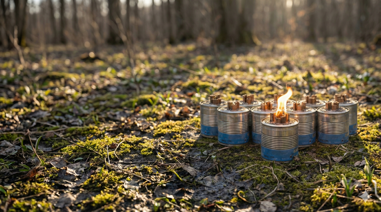 Компактна свічка в металевій банці з картоном, просоченим парафіном. Горить рівно та довго, не боїться вітру, зручна для транспортування і використання в польових умовах.